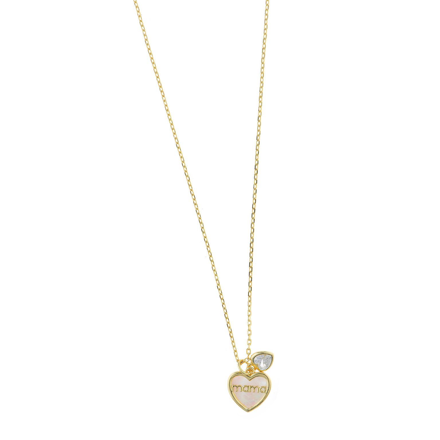 Collar Salvatore plata chapado dorado corazón madre perla y circonita blanca corazón