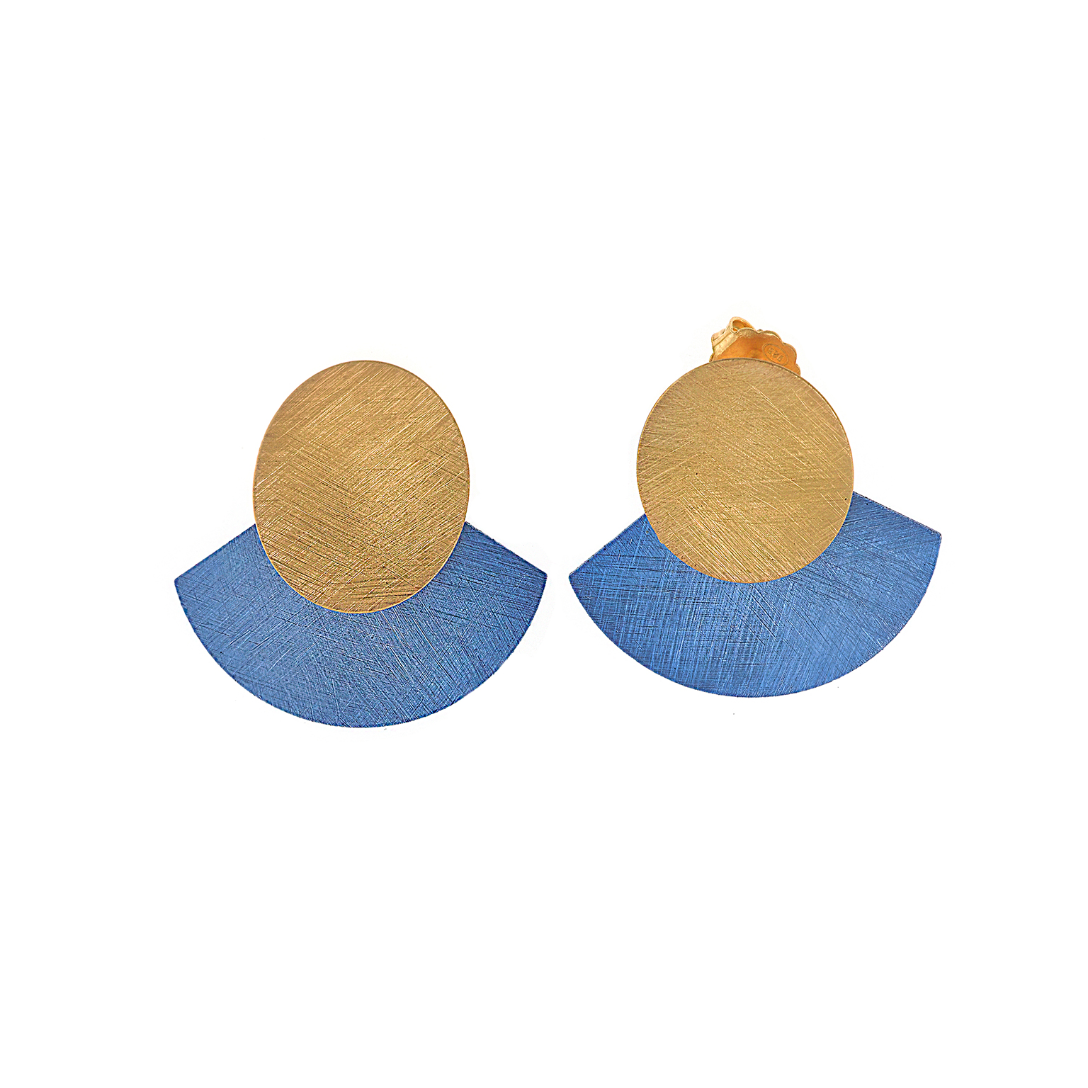Pendientes Salvatore de la colección Bamboo en plata de ley chapado dorado compuestos por una pieza circular bañada en oro y otra pieza en forma de semicírculo esmaltado en color lavanda. Su cierre es de presión.