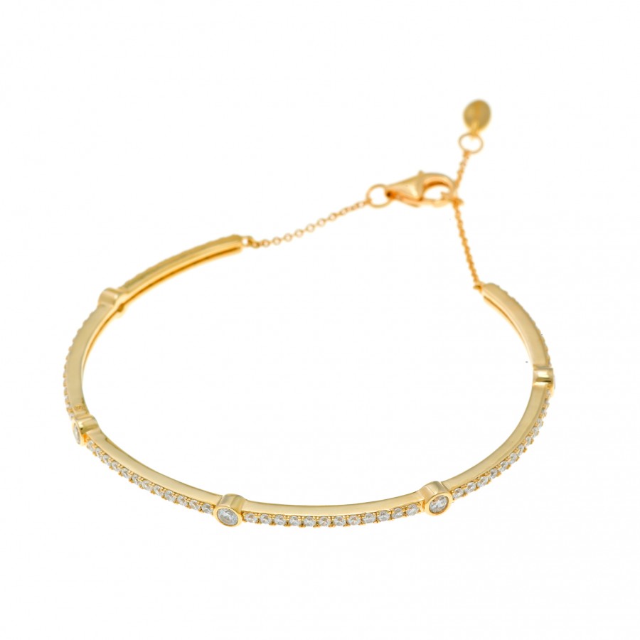 Pulsera Salvatore en plata chapado dorado de diseño rígido abierta en sus 2 extremos, uno de ellos está acabado en una circonita Pulsera Salvatore en plata chapado dorado de diseño rígido abierta en sus 2 extremos, uno de ellos está acabado en una circonita brillante engastada en forma circular